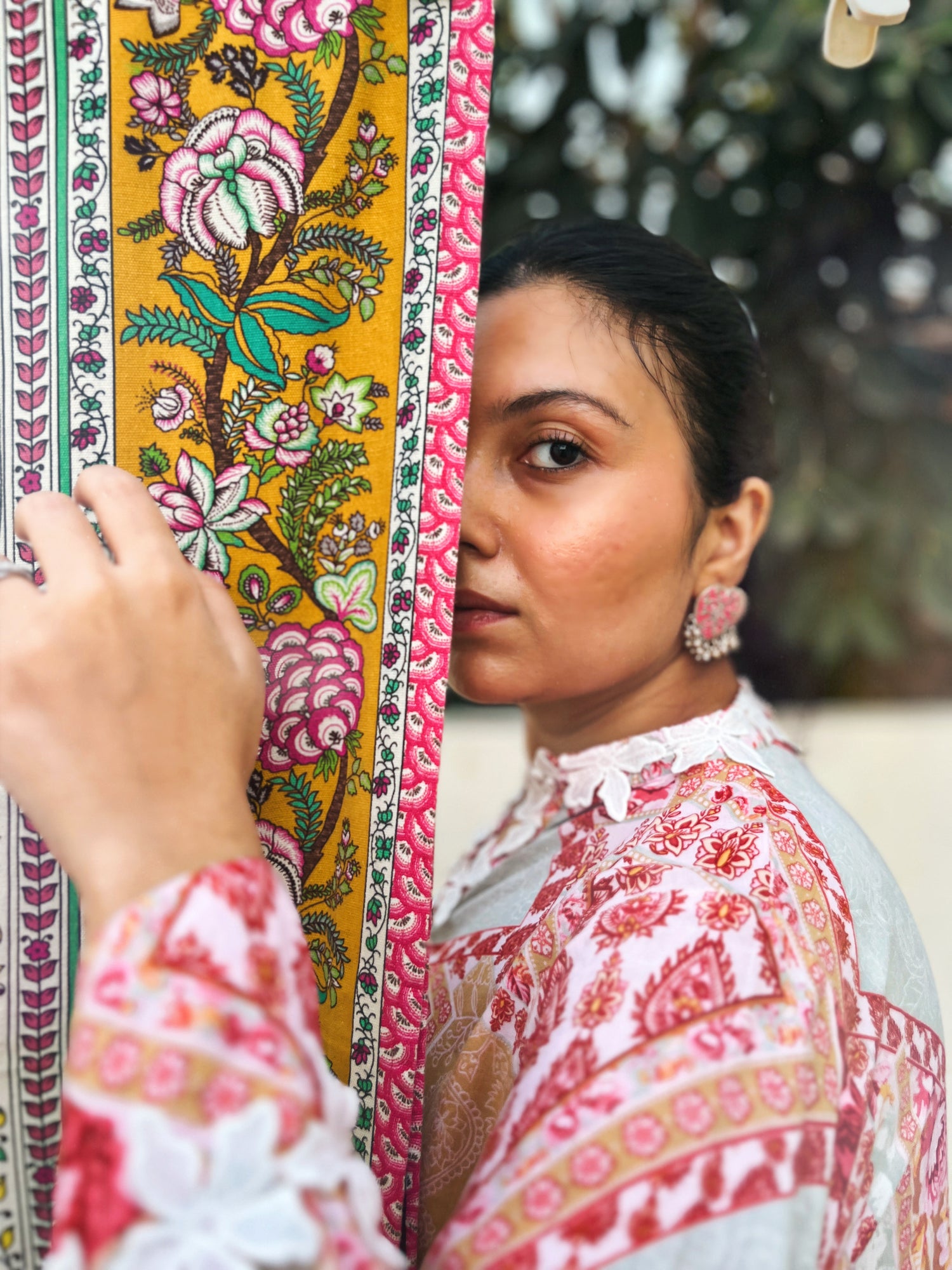 دل سے, A beautiful double georgette long shirt paired with a culotte and hand embroidered by Nasreen.